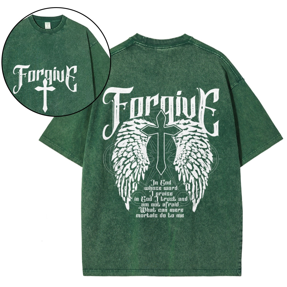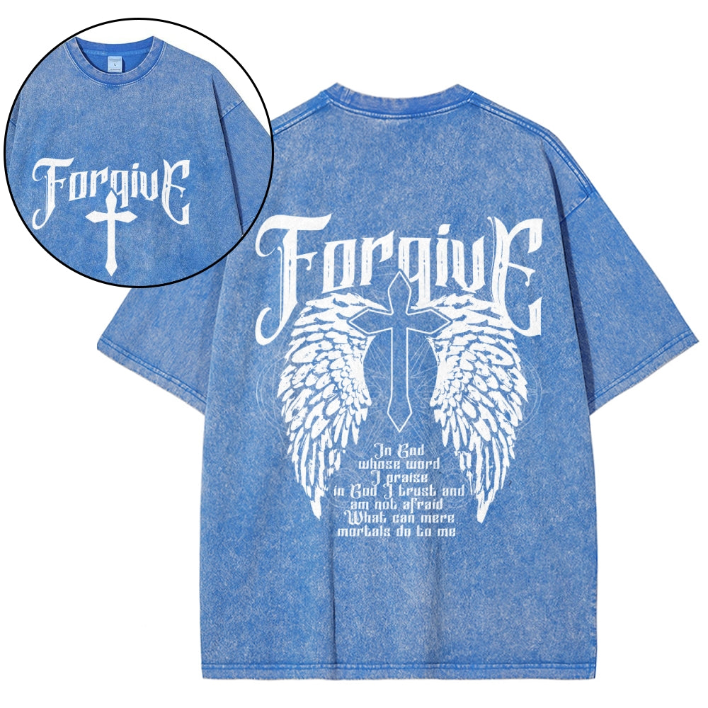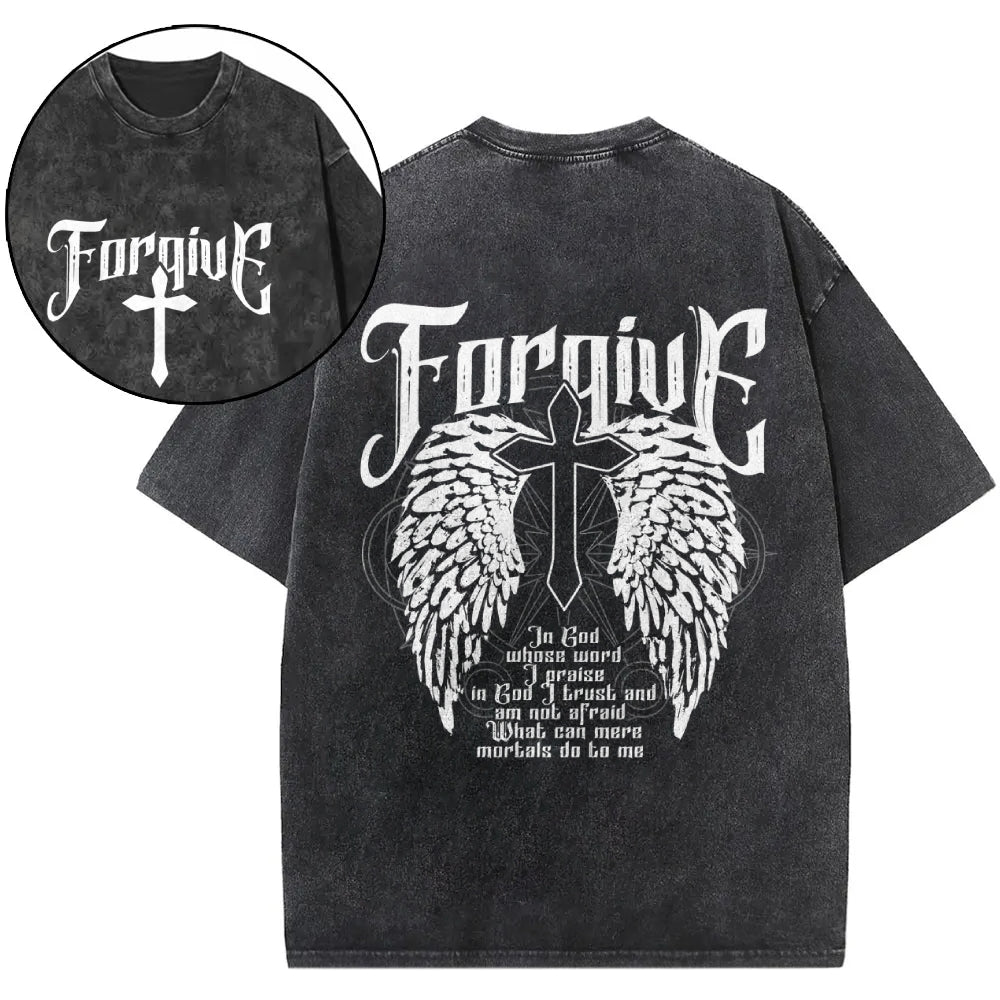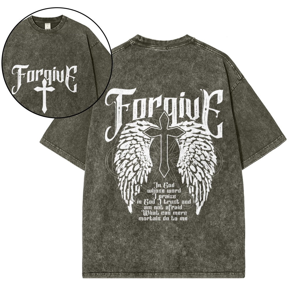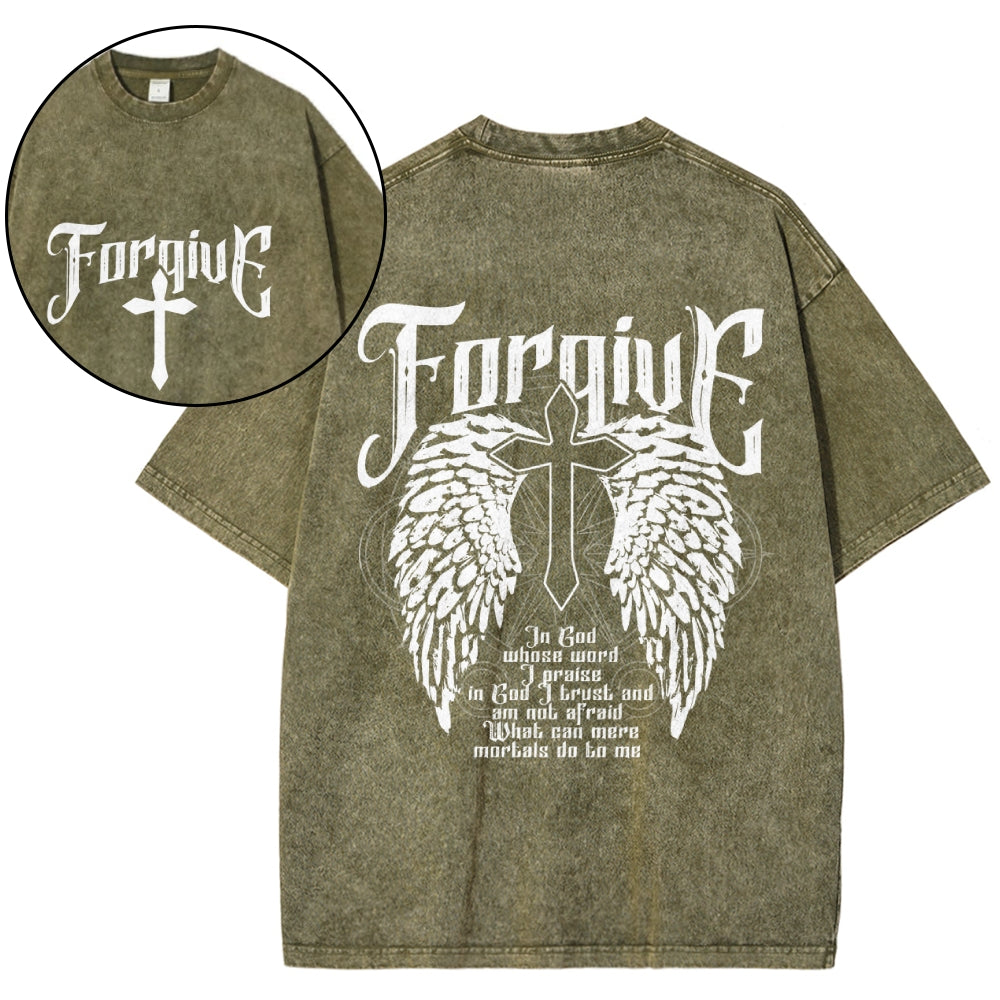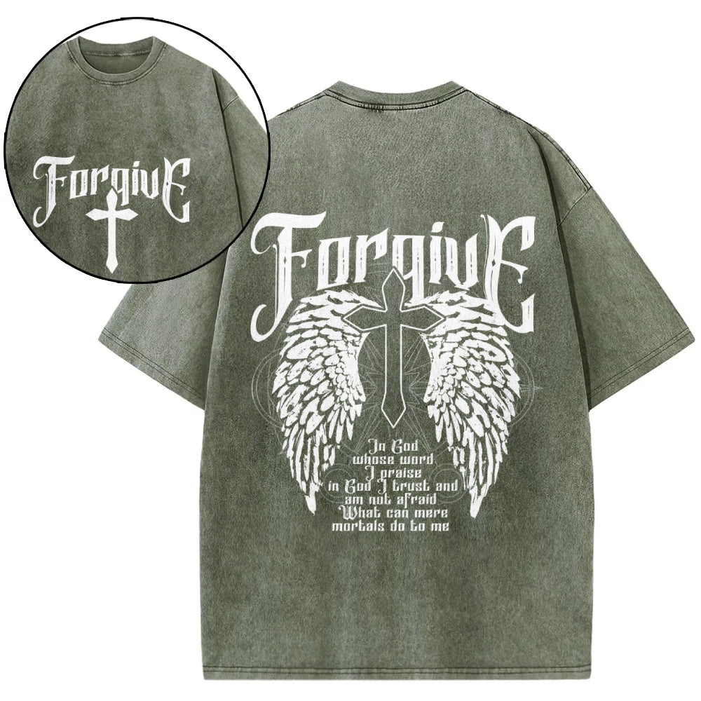 "Forgive" Theme Angel Wings Design Washed T-shirt