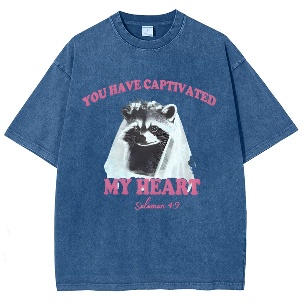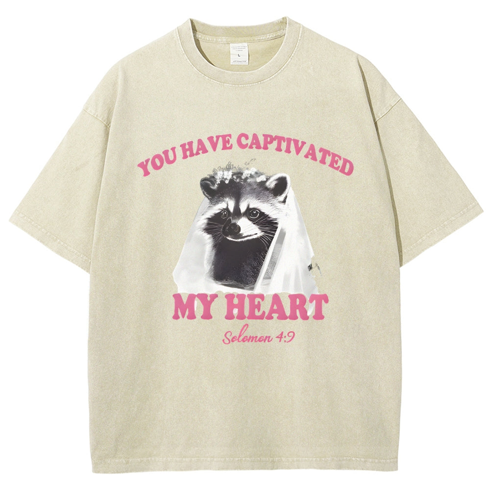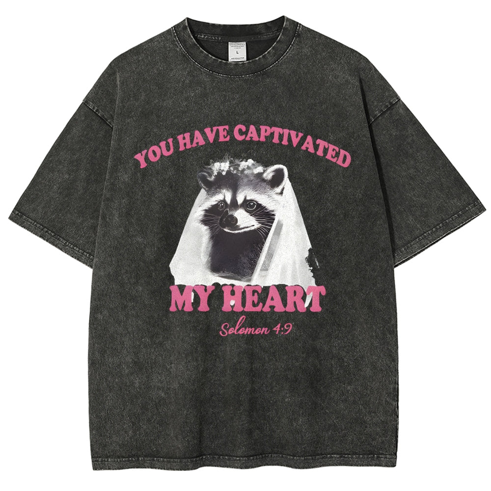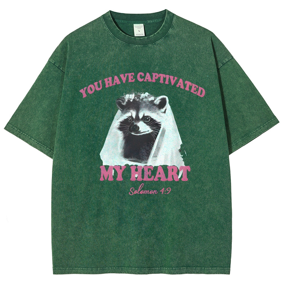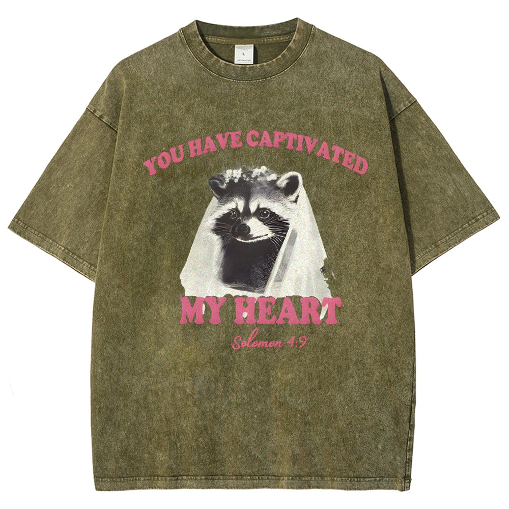 Raccoon Captivated My Heart Washed T-Shirt