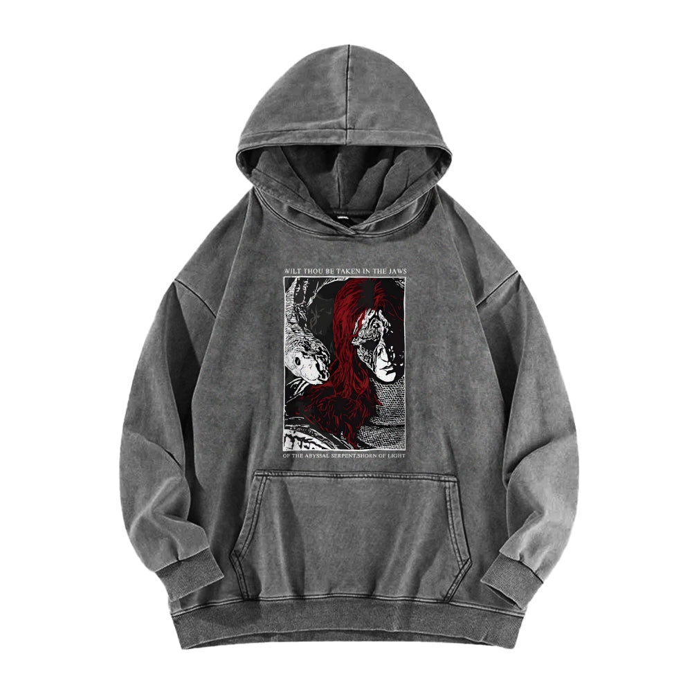 Abyssal Serpent Dark Fantasy Washed Hoodie