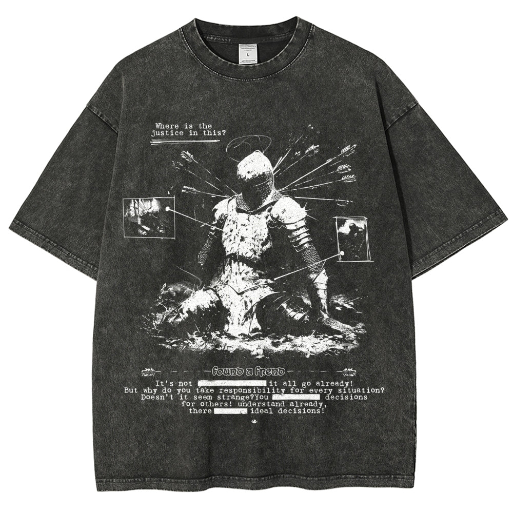 Anime Style Robot Pattern Washed T-Shirt