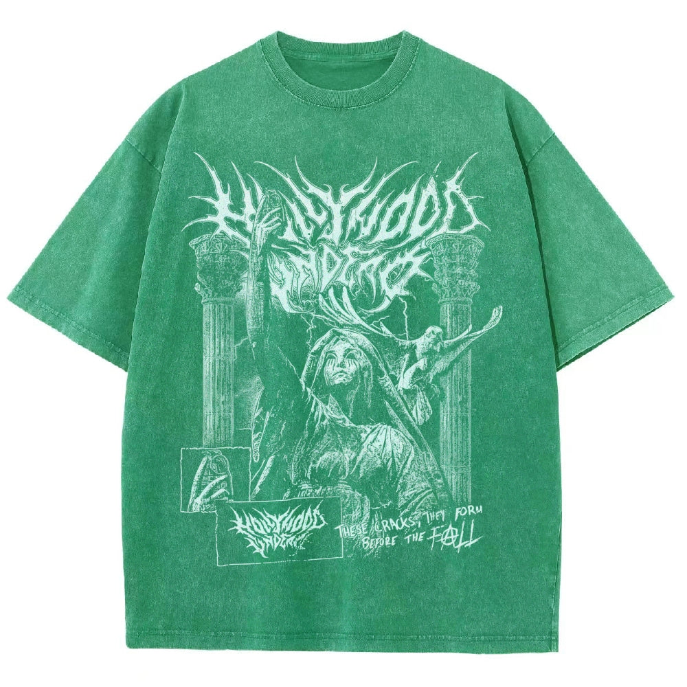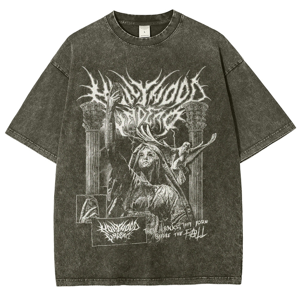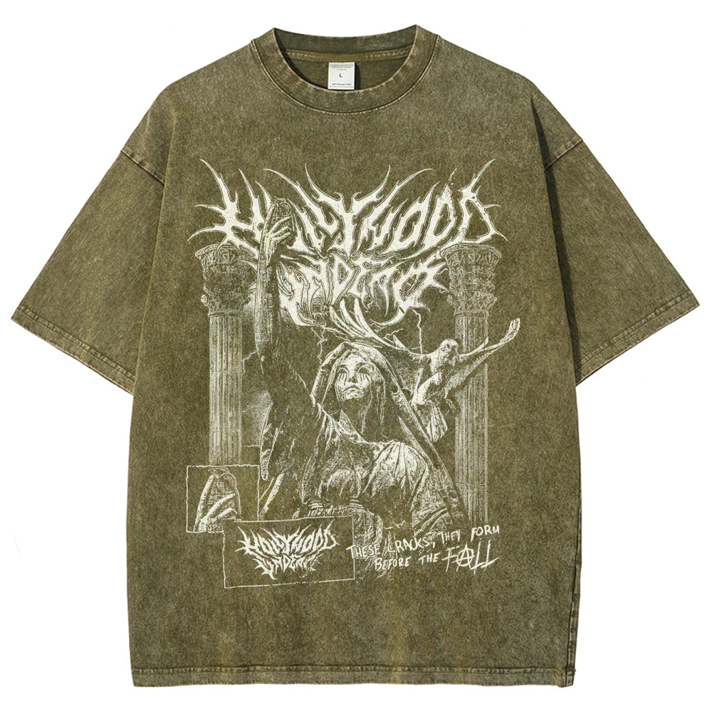 Gothic Demon Pattern Washed T-Shirt
