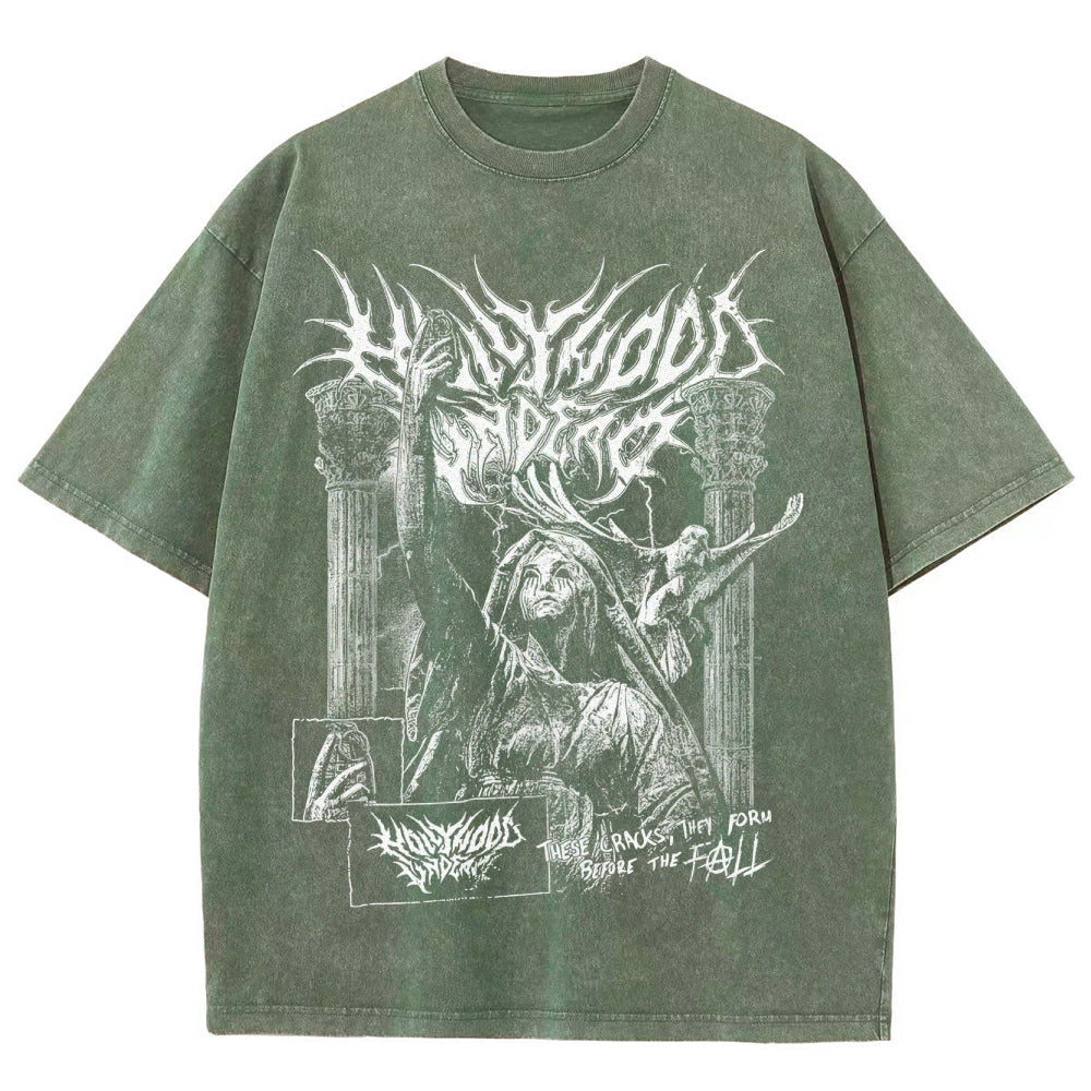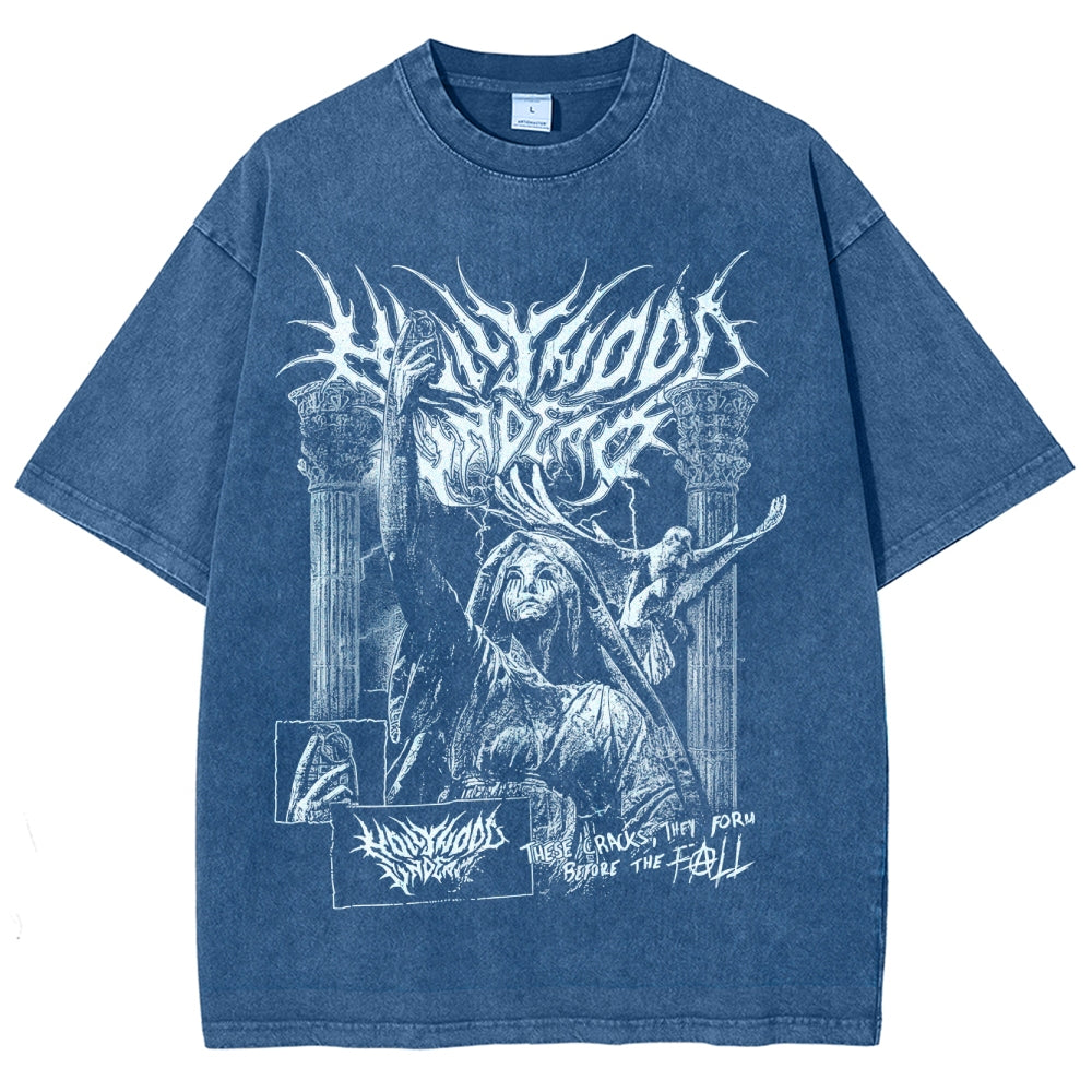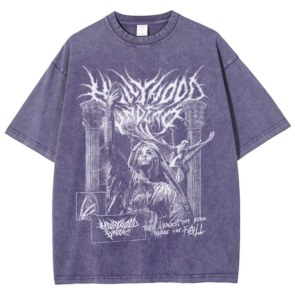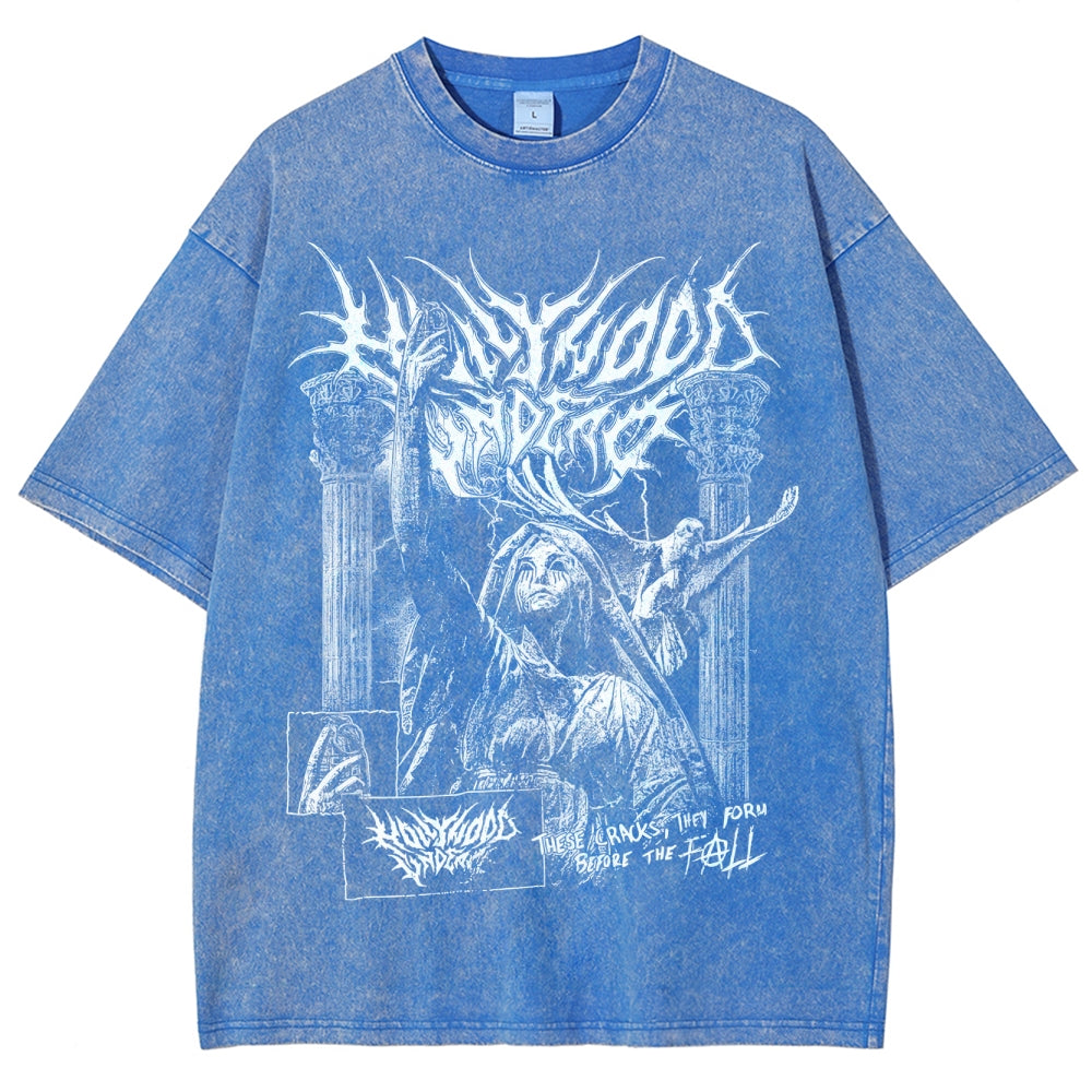 Gothic Demon Pattern Washed T-Shirt