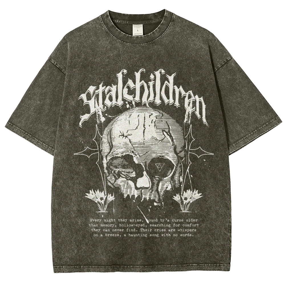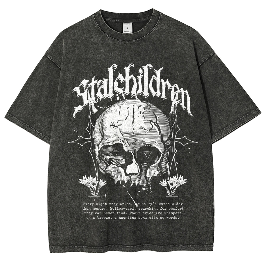 Heavy Metal Style Skull Pattern Washed T-Shirt