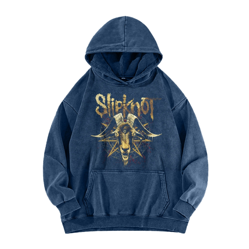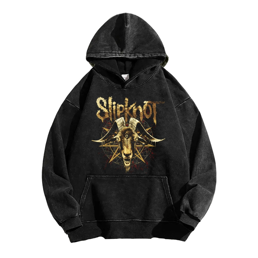 Slipknot Band Goat Head Pattern Washed Hoodie