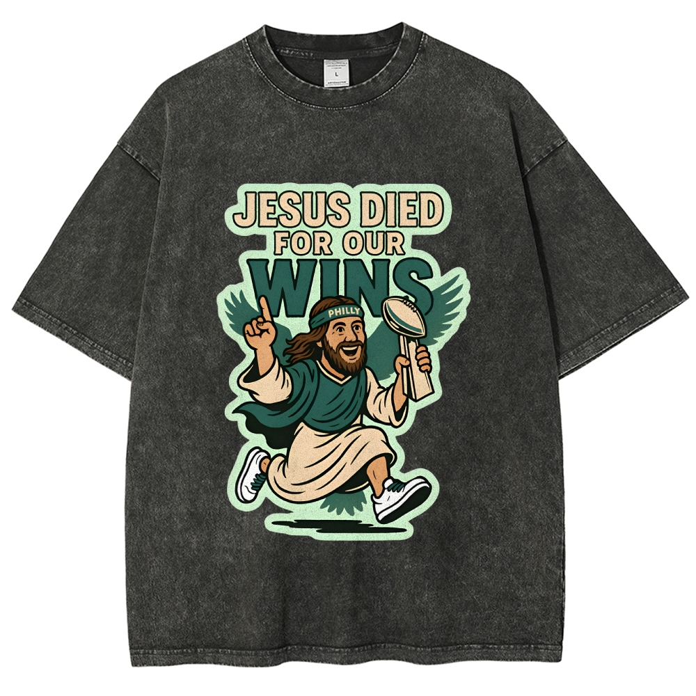 Jesus Died For Our Wins Washed T-Shirt$29.95 USD