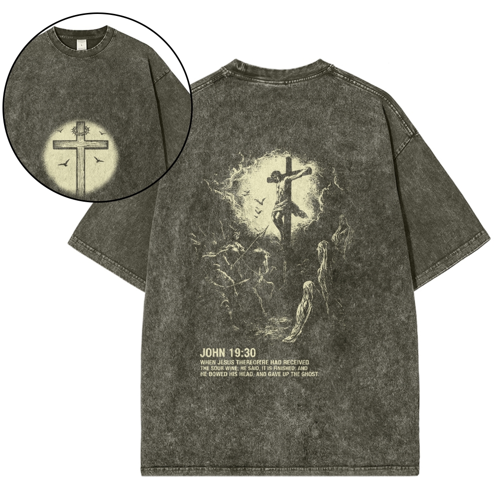It Is Finished Design Washed T-shirt$29.95 USD