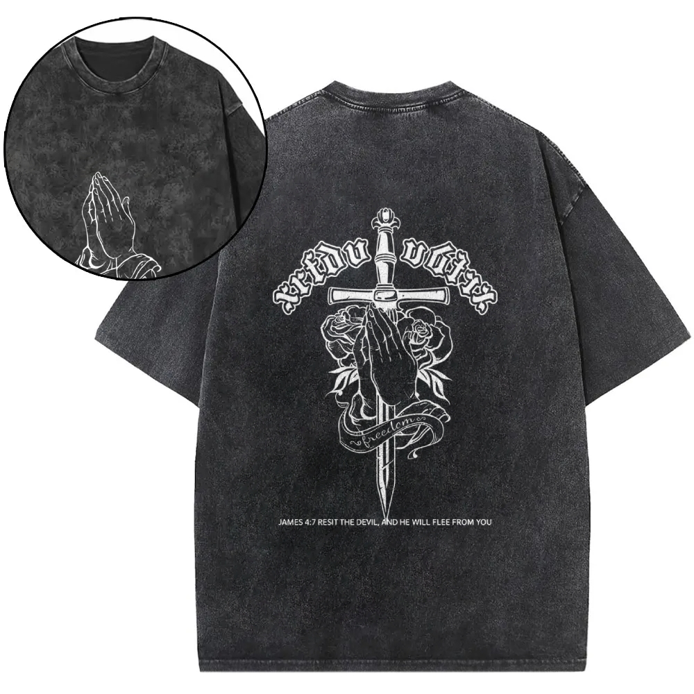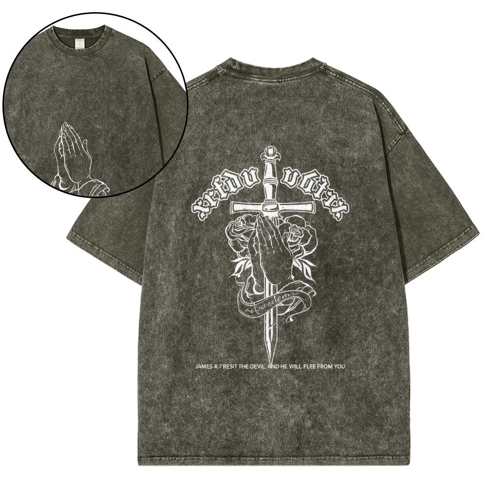 Resist the Devil Design Washed T-shirt$29.95 USD