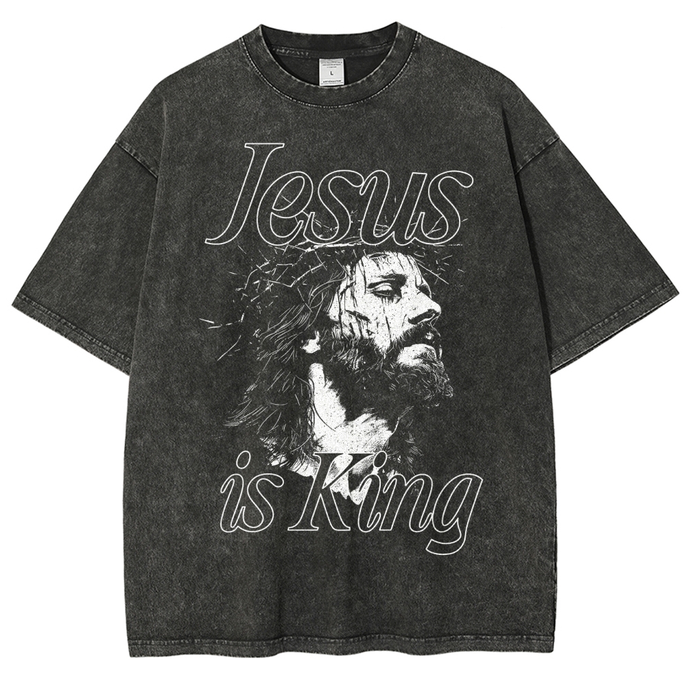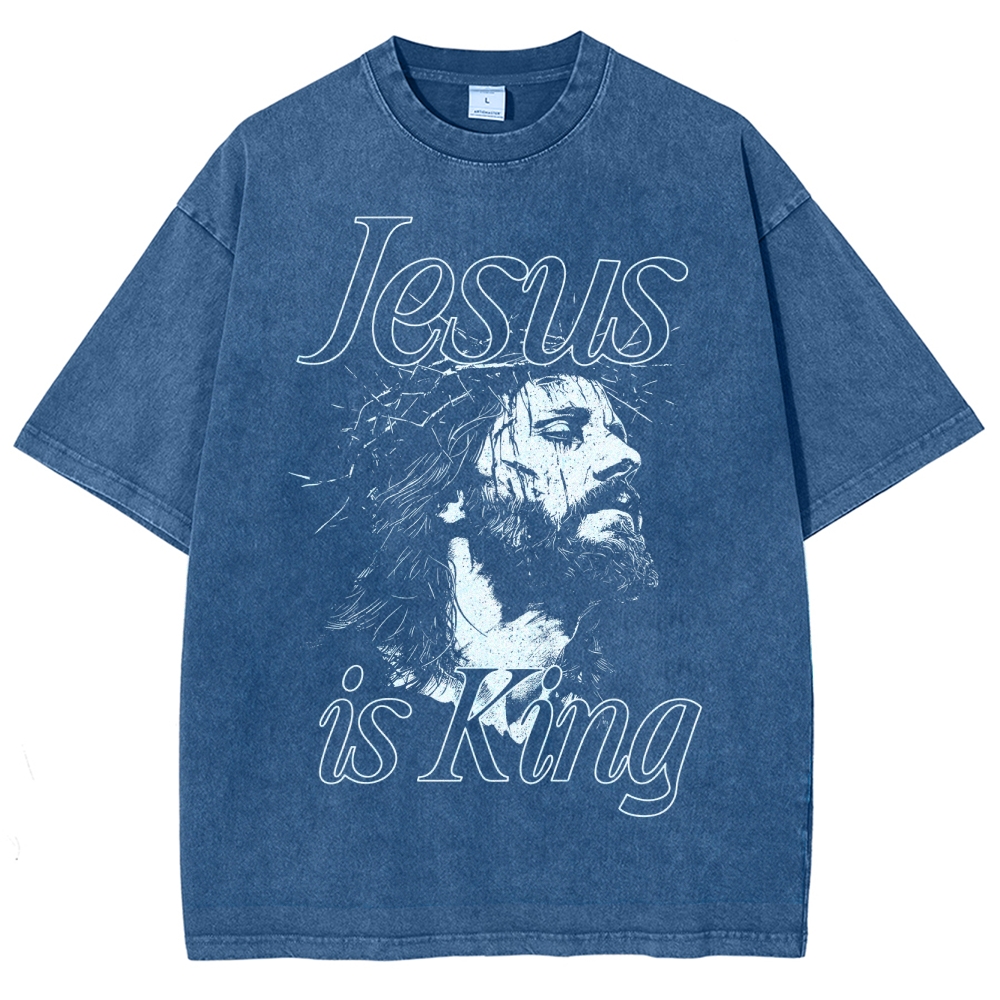 Jesus is King Design Washed T-shirt$29.95 USD