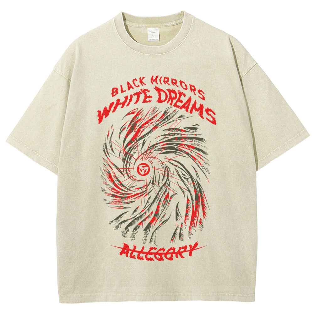 "Black Mirrors White Dreams" Theme Washed T-Shirt