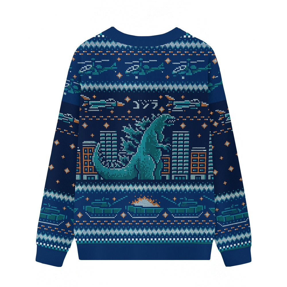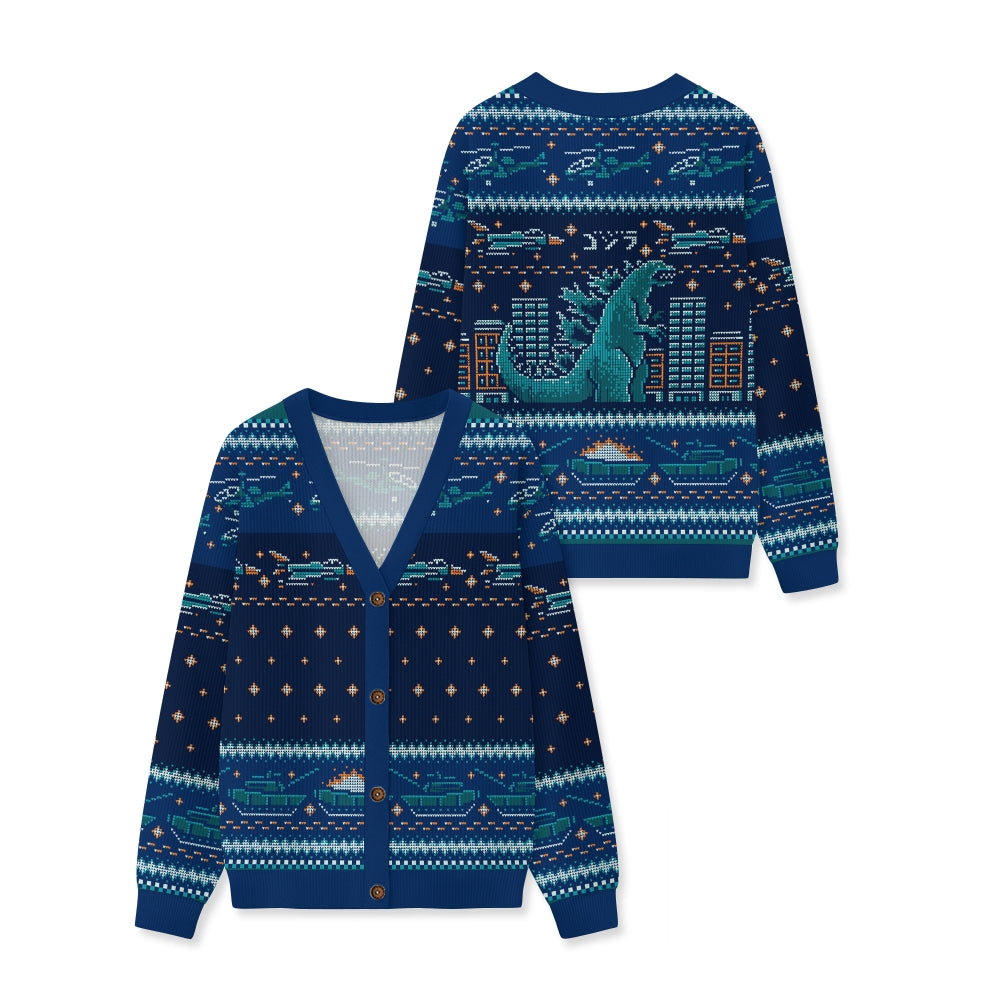 Godzilla City Christmas Ugly Cardigan Sweaters
