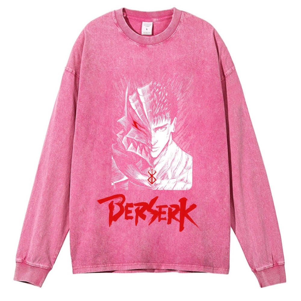 Anime Style Samurai Pattern Washed Long-Sleeve T-shirt