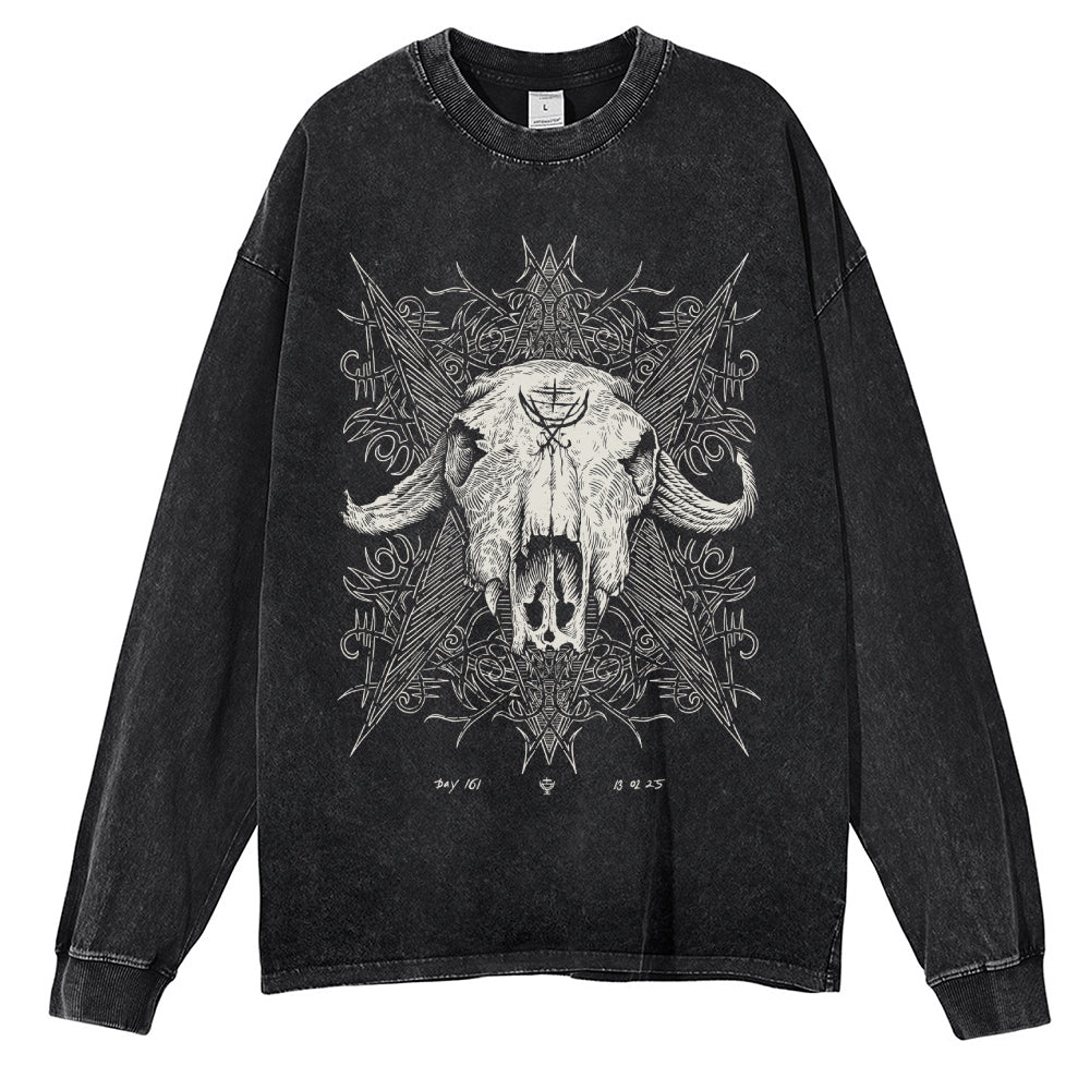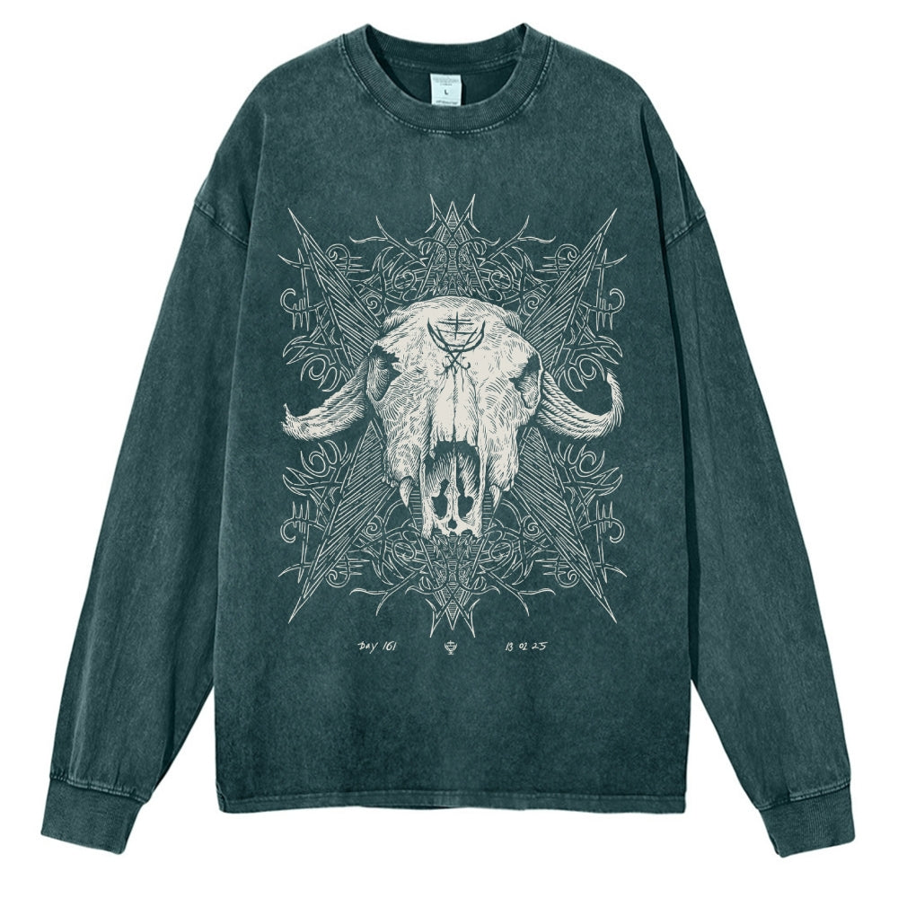 Horned Skull Washed Long-Sleeve T-shirt