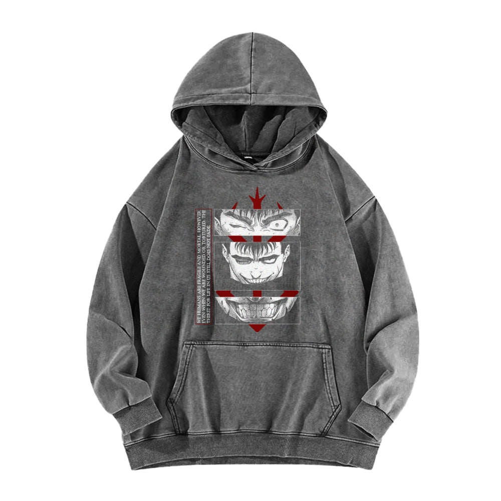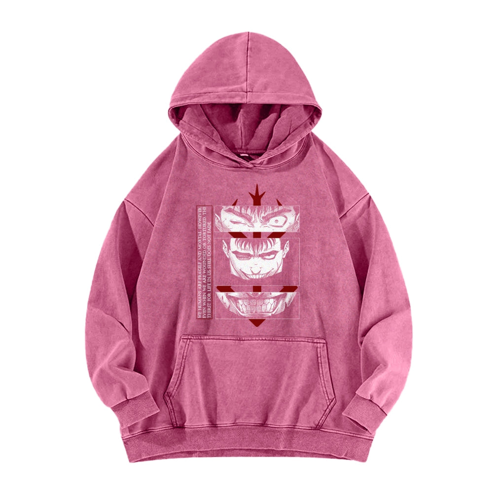 Anime Style Expression Pattern Washed Hoodie