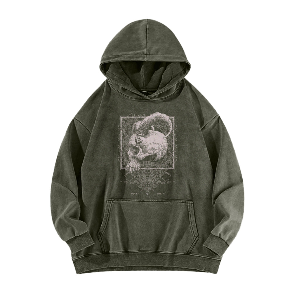 Horned Skull Washed Hoodie