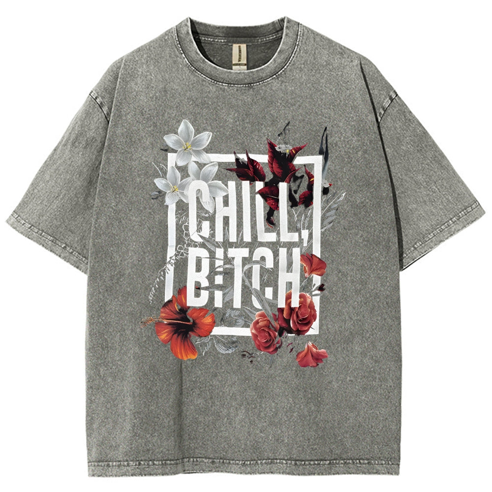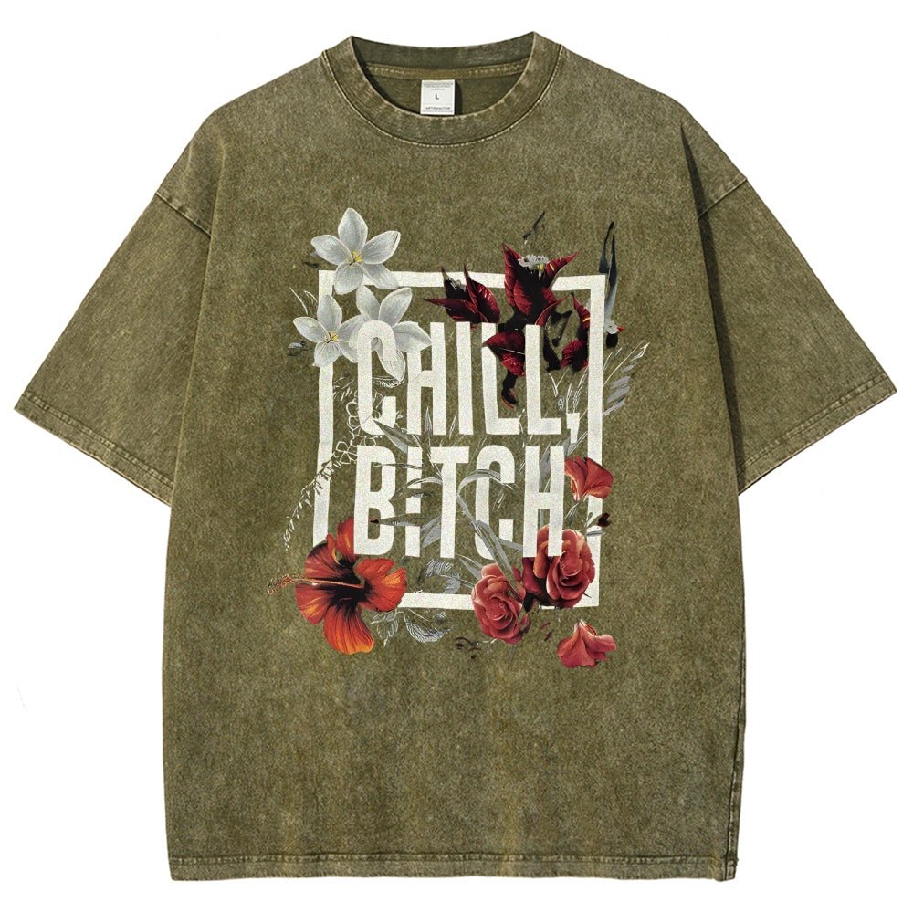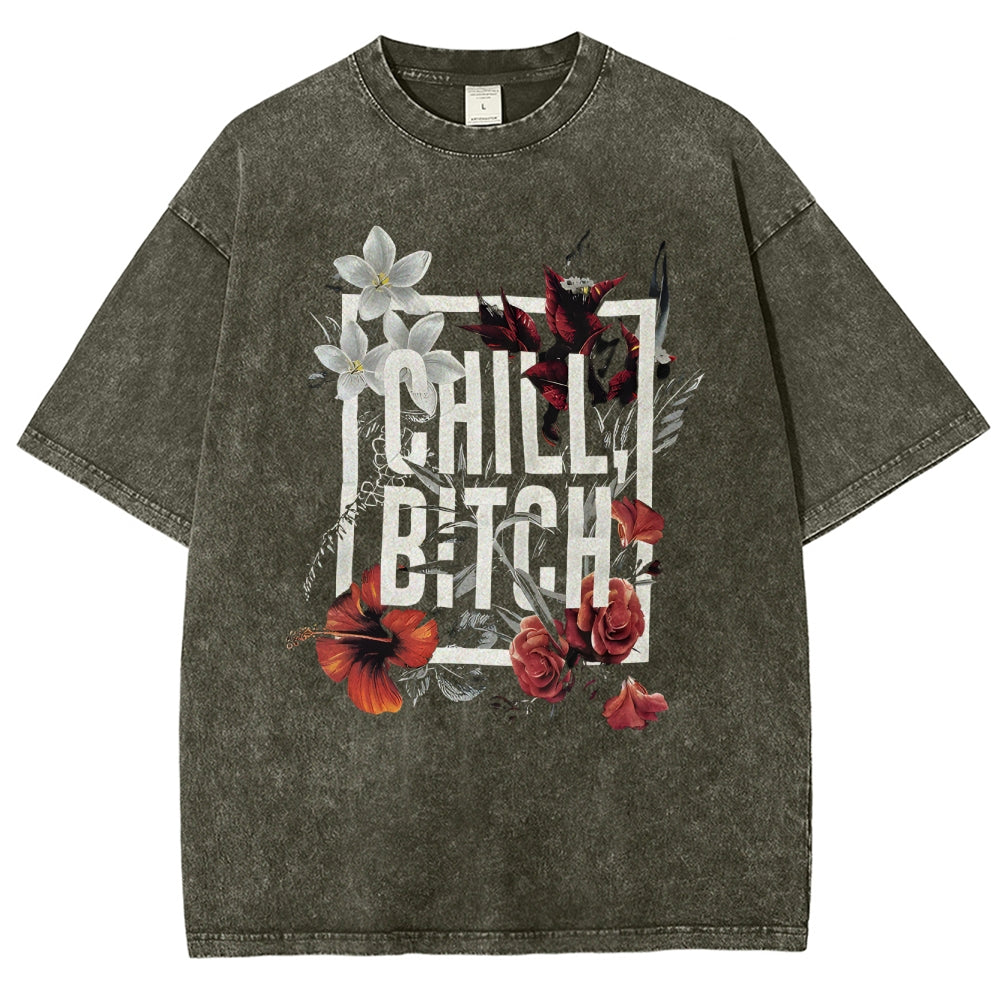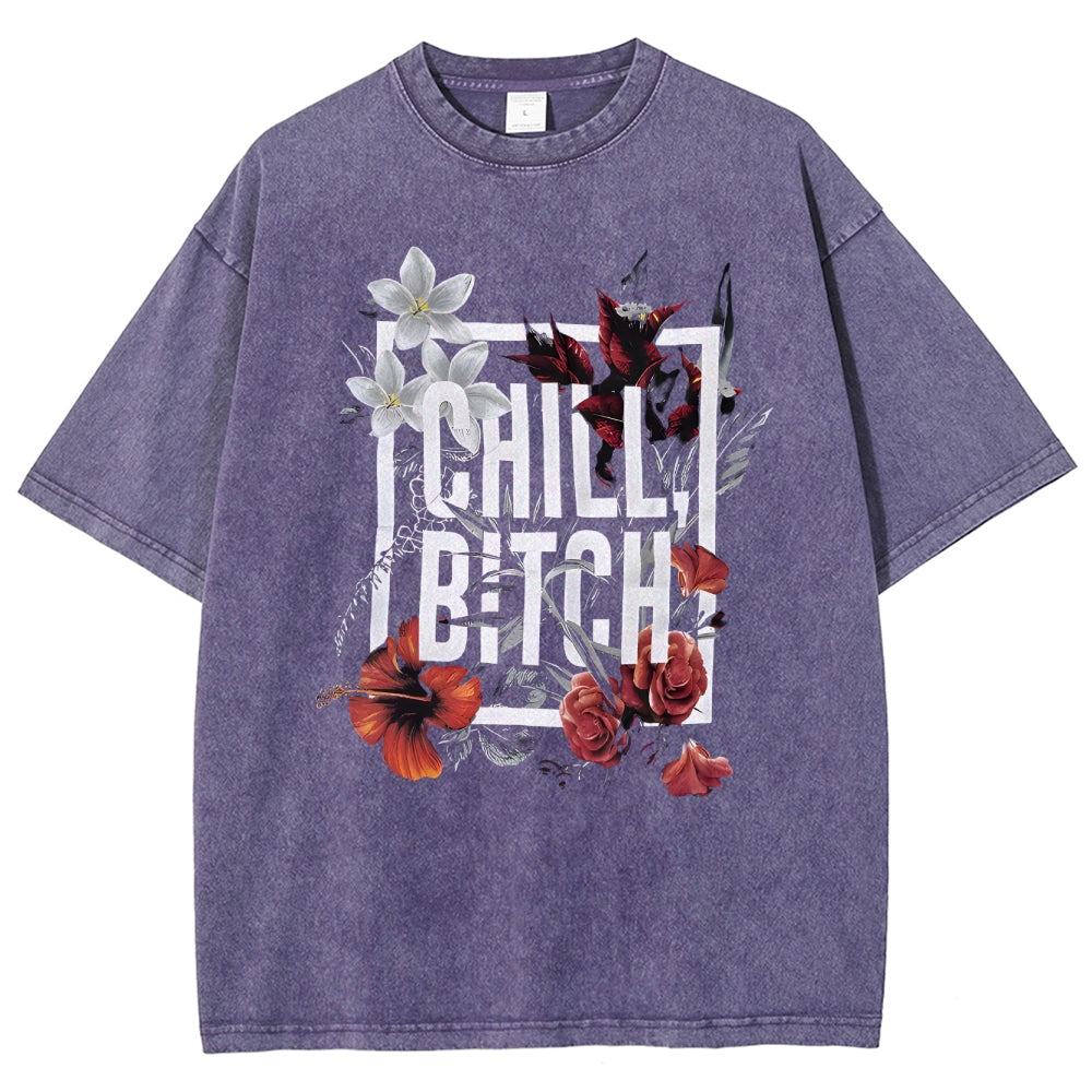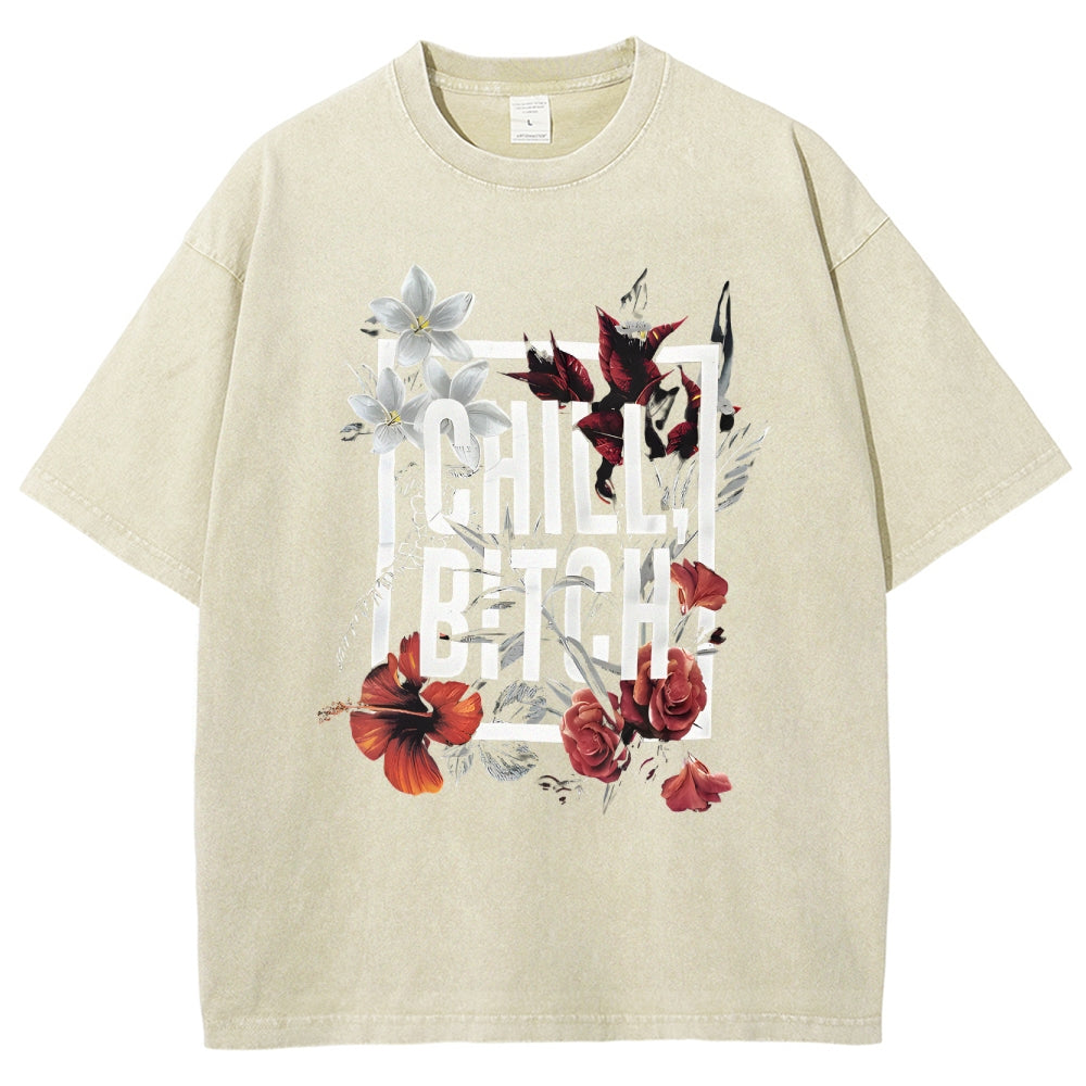 Chill Bitch Floral Streetwear Washed T-Shirt