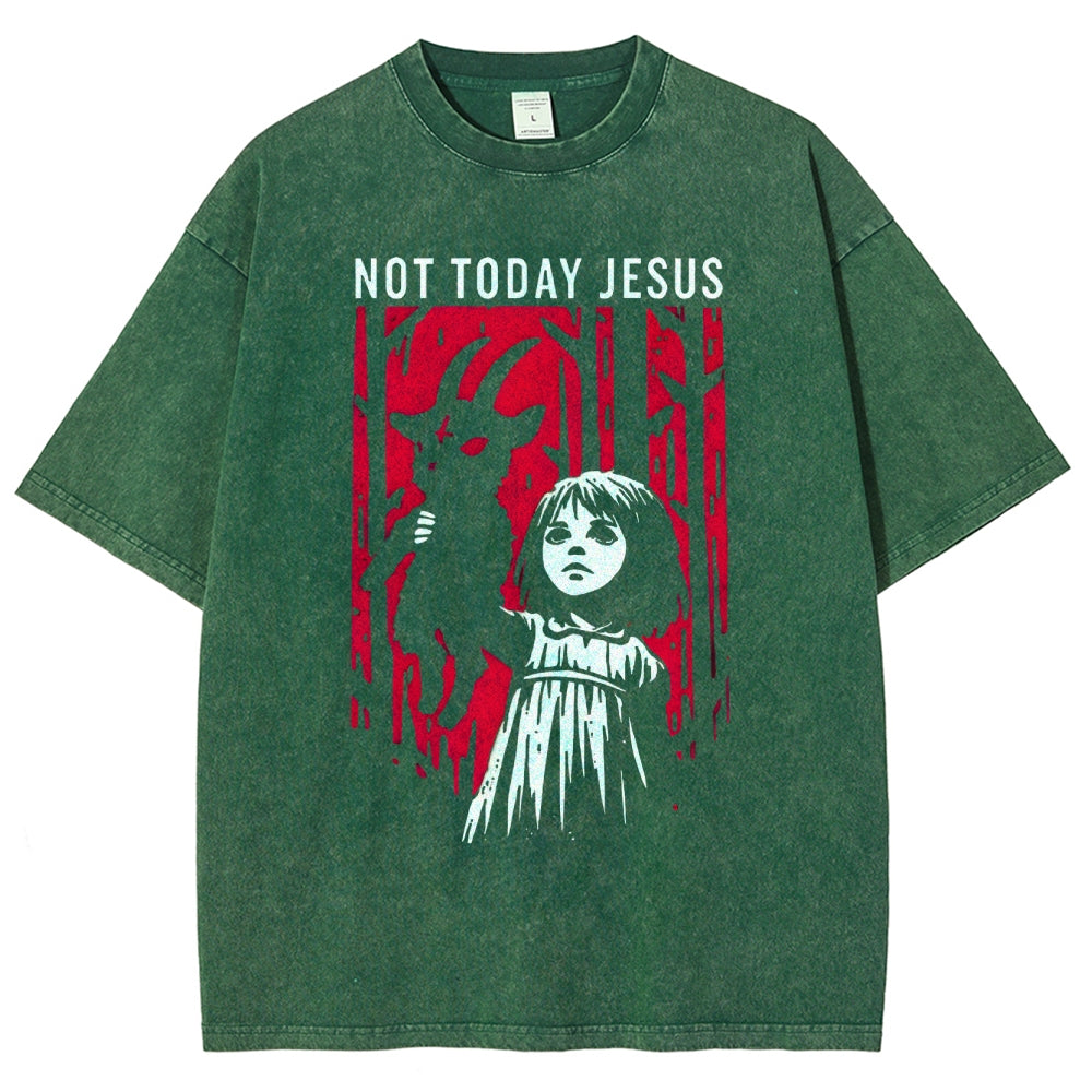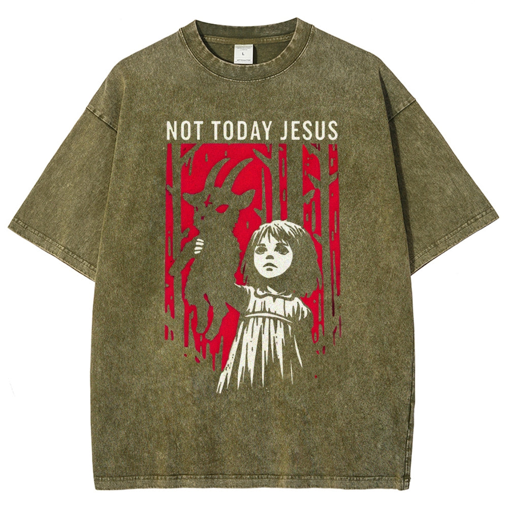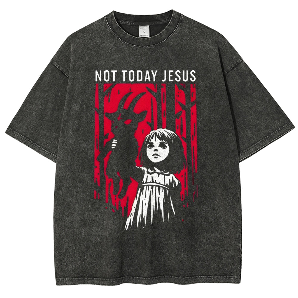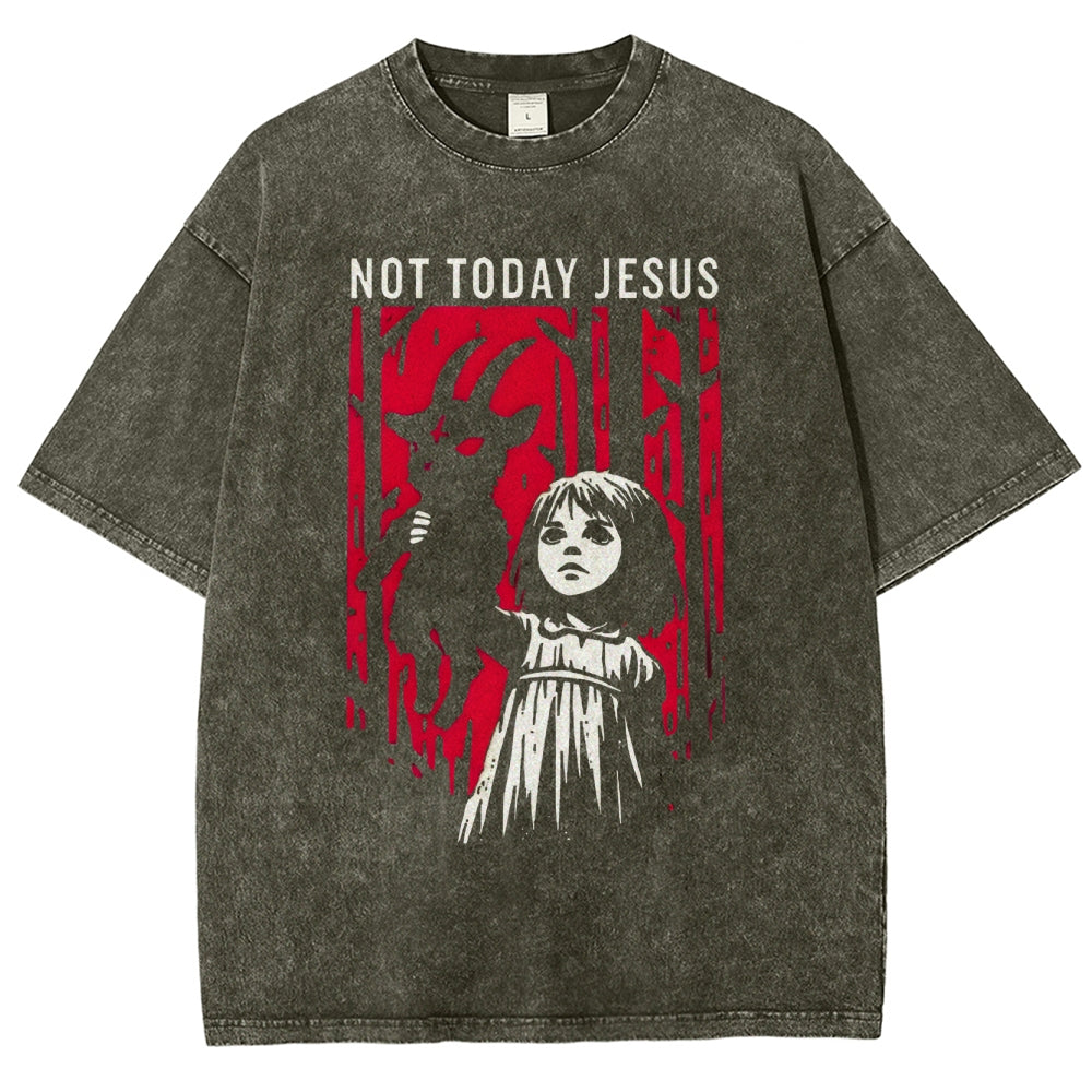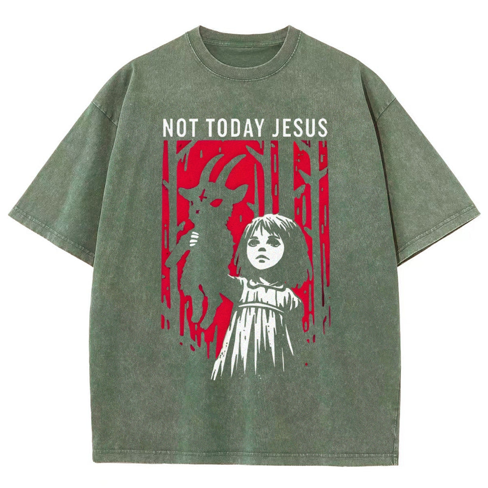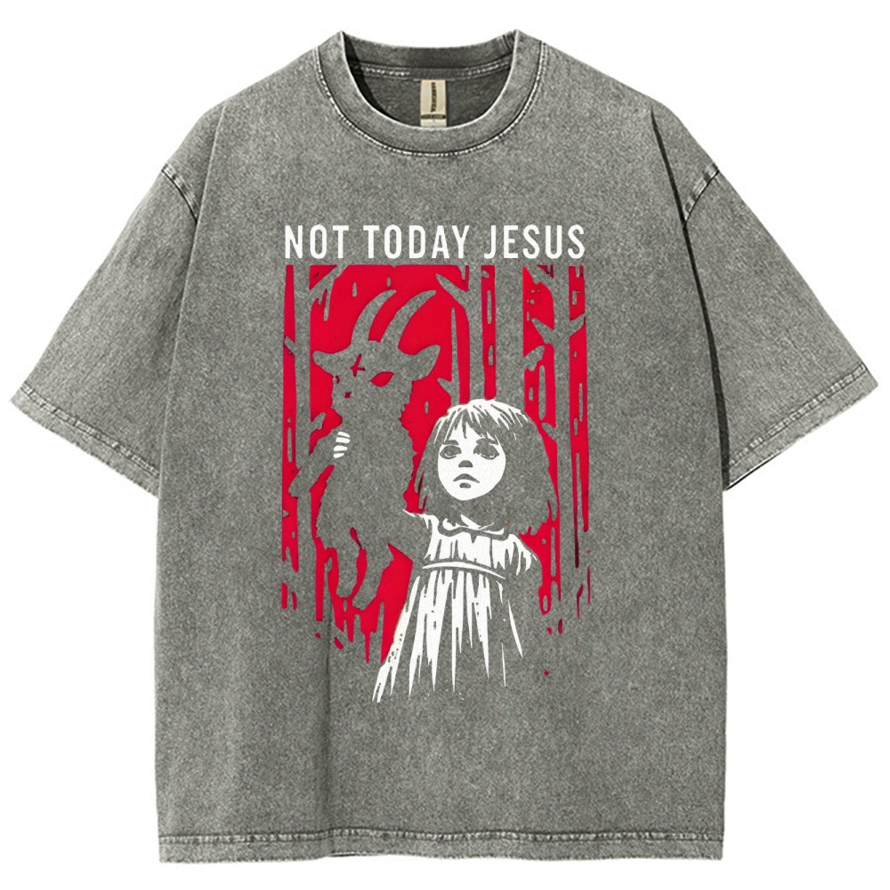 Not Today Jesus Dark Gothic Washed T-Shirt
