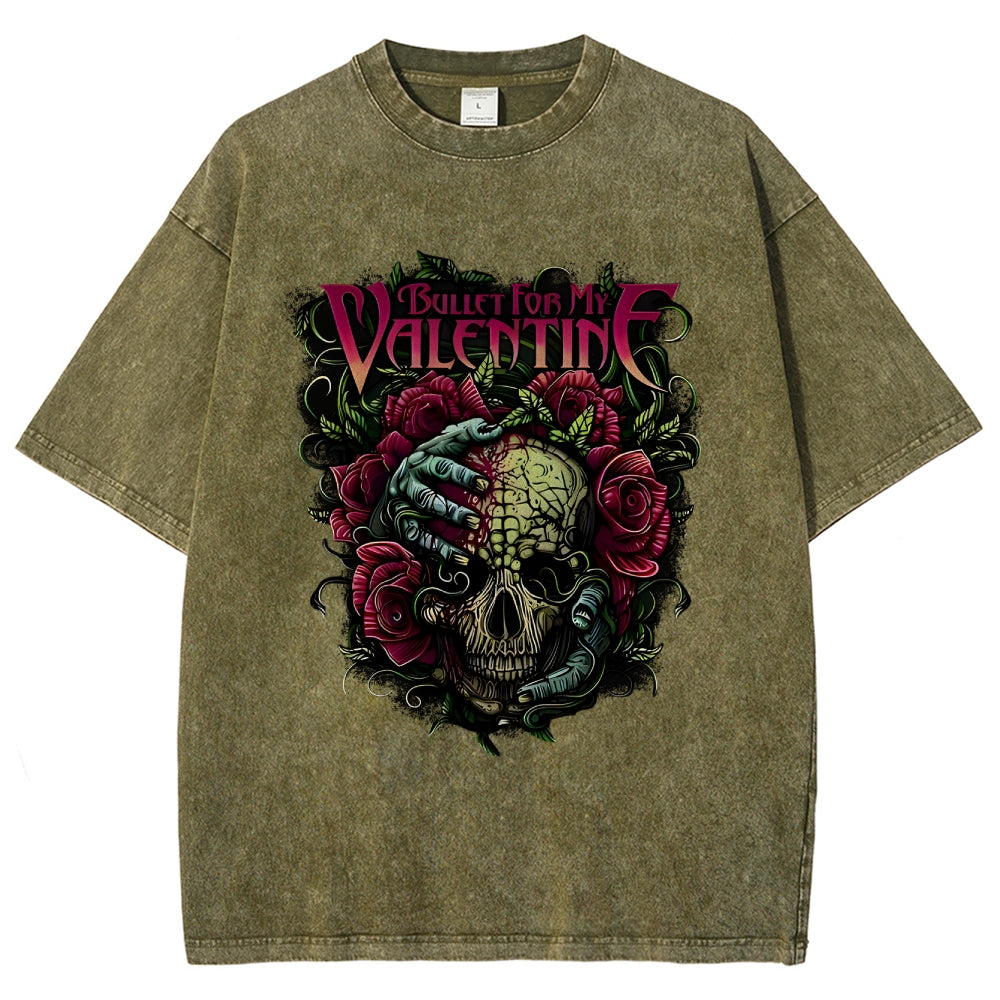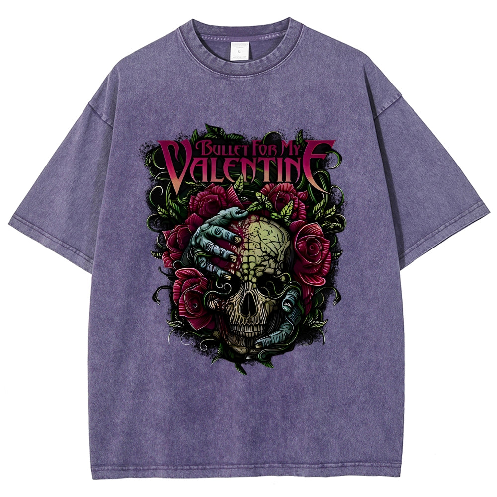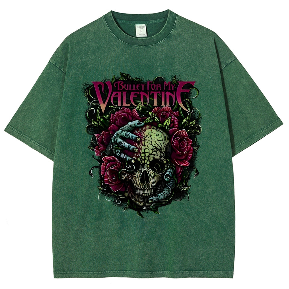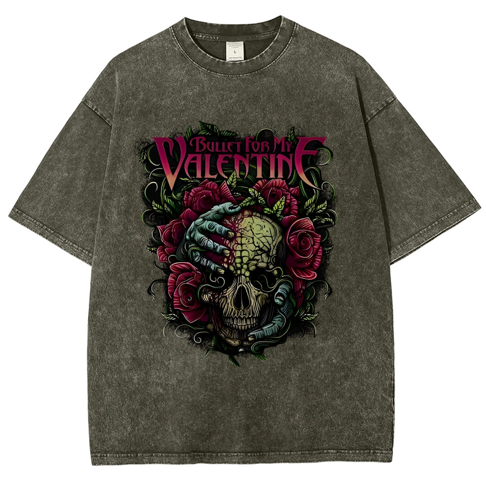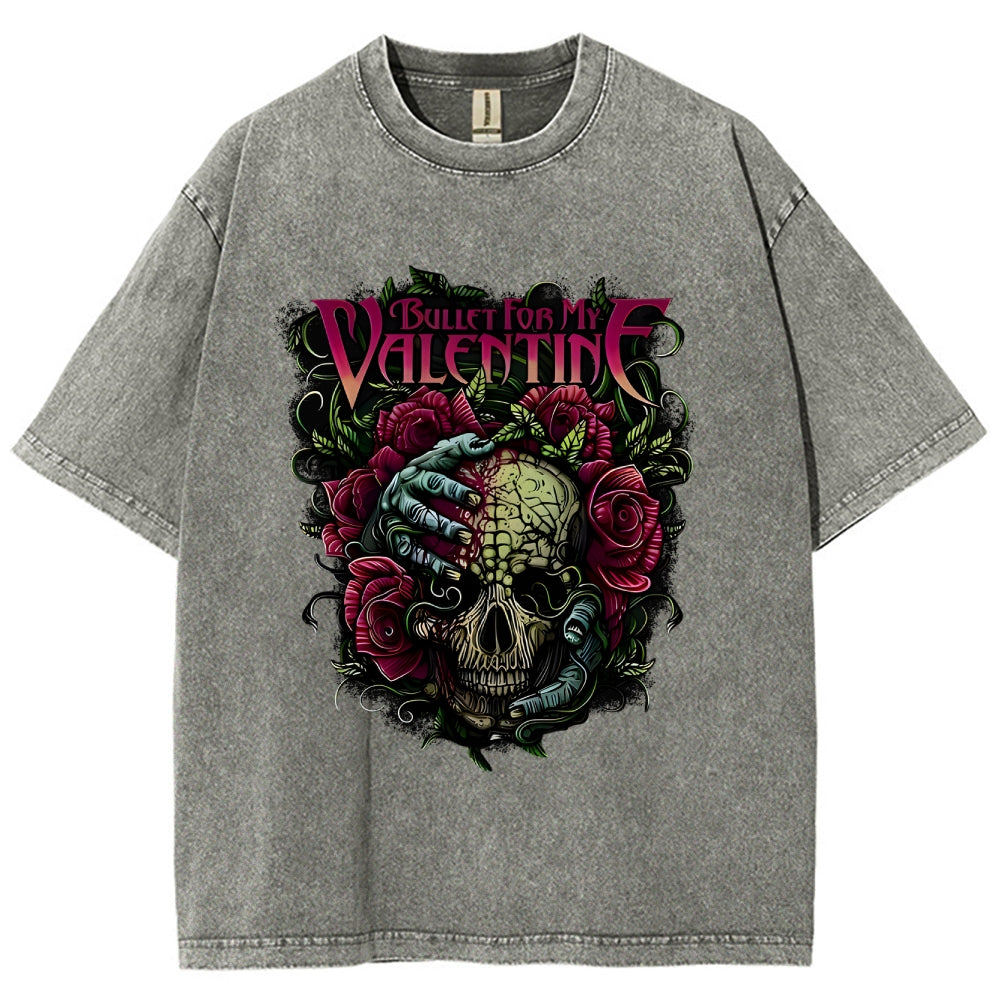 Valentine Skull Floral Metal Washed T-Shirt