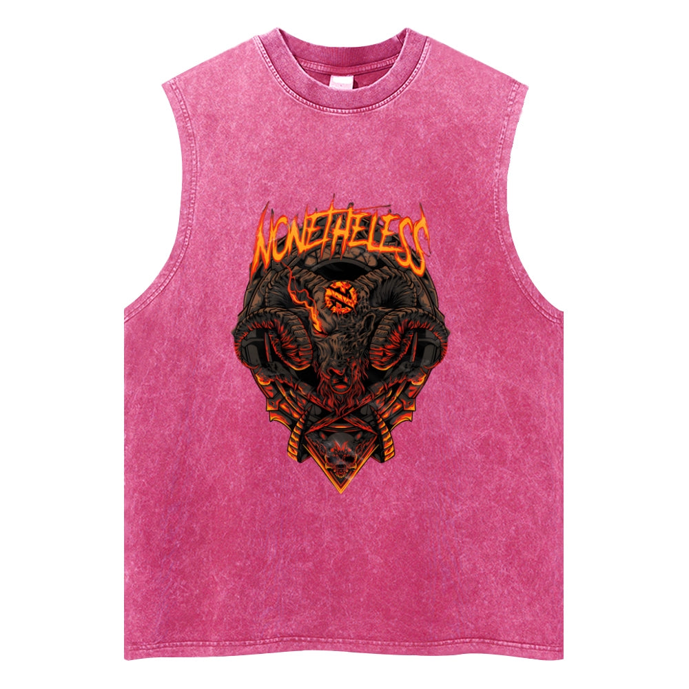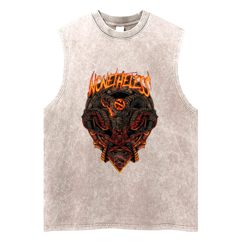 Flaming Goat Demon Metal Washed Tank Top